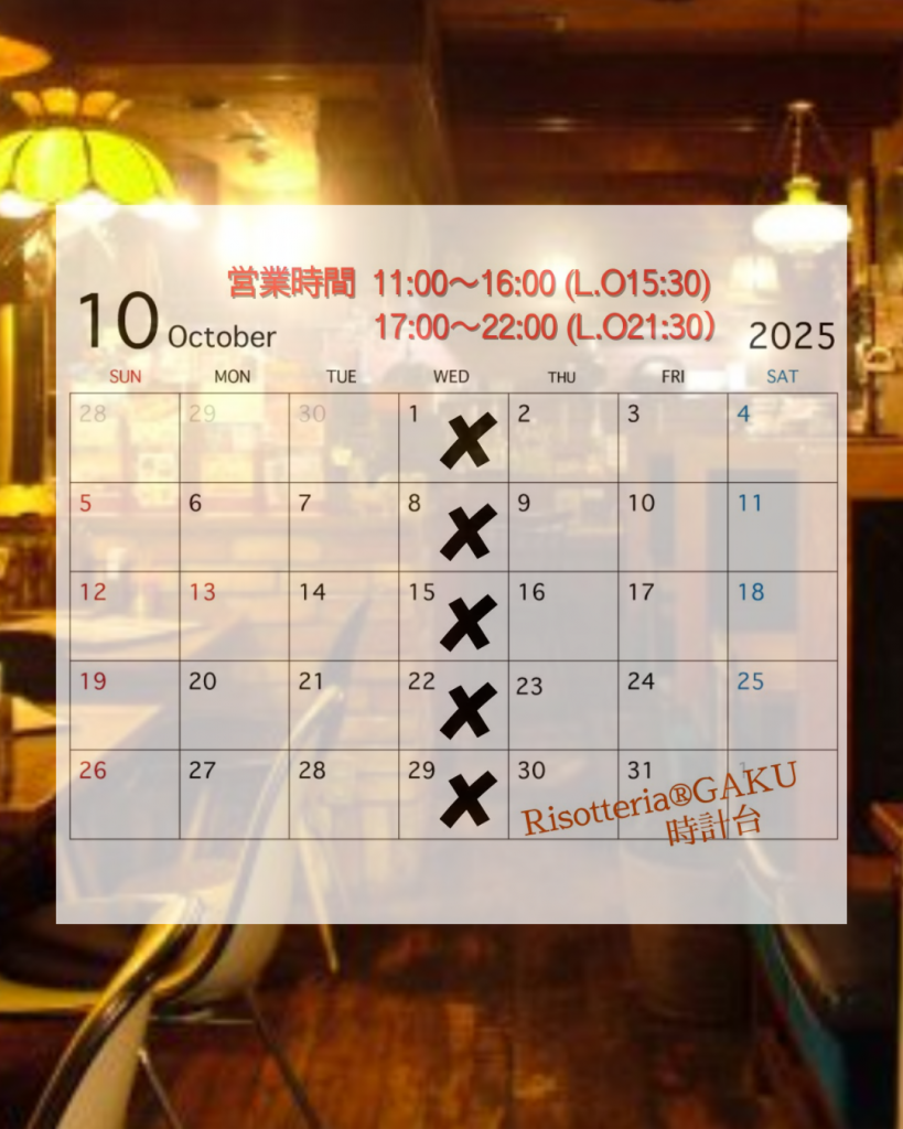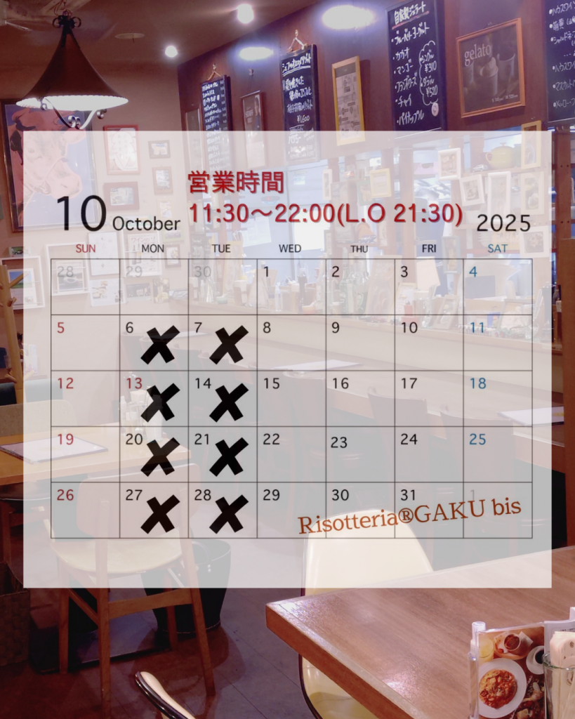 【10月定休日のお知らせ】