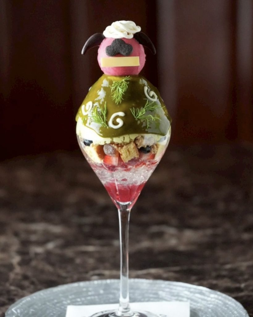 『 獅子舞パフェ〜唐草模様の胴幕餅〜 』