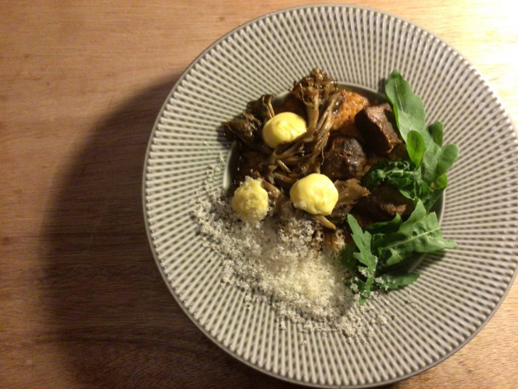 『舞茸のマリネと知床産エゾシカのリゾット』