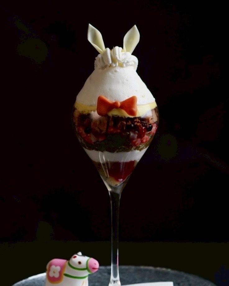 縁起の良い白馬のパフェ。
