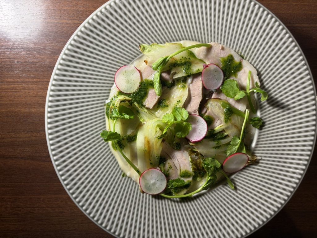 『豚肉のボリート、豆と七草のラグーリゾット』
